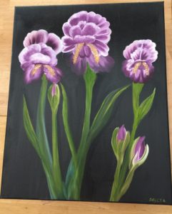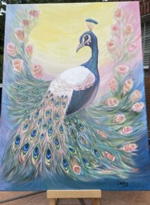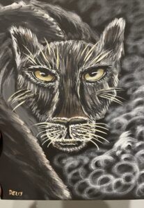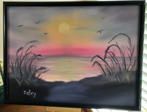 A beautiful job creating a one-of-a-kind art piece specifically with me in mind. From the answers to a few simple questions, Donna, a.k.a. “Delcy,” beautifully painted a piece that reflects me. It brings joy to having it hanging in my office! — Aimee